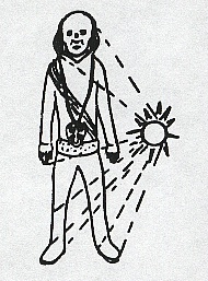Summary: Mrs. Anne Eilbes answered the doorbell to find on the doorsteps a man wearing a narrow-brimmed hat with a brown face “like smoke meat” marked with many vertical gray lines; the chin was narrow & the mouth a puckered opening only 1/4 ” in size. He was holding a white staff 5 ft long. When he did not answer her queries, her husband Peter went out & grabbed at the being, but “went back into shock” & had to retreat. He saw 4 other similar beings on the street; they were moving in long slow jumps “like astronauts on the moon,” hitting the ground with their sticks with a clicking sound. They looked deformed, “like gnomes,” with claw like hands & bowed legs. As the being “drifted” across the lawn, he raised a bent hand to the witnesses.