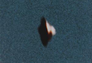 Summary: My mother, sister and her boyfriend saw it first, and called me. It was a triangular shaped cluster of lights, like an invisible delta winged aircraft with lights along the edges of its wings, nose and tail. The lights were bright, greenish and teardrop shaped, like flames. It moved very slowly down the valley below us, making no sound. As it moved away it gathered speed and shrank to a single light, then shot away at incredible speed. That same night, it was sighted in several other places over Mahe and the surrounding sea, each time described differently. Over the airport, witnesses described it as a disc shaped craft with lights all around it, the tracking station described it as a cylinder of lights, and it was seen out at sea as a sphere of lights hovering over the ocean. This was all reported in the local newspaper the following day, complete with illustrations. These sightings were made within minutes of each other, and all the witnesses agreed that it made no sound.