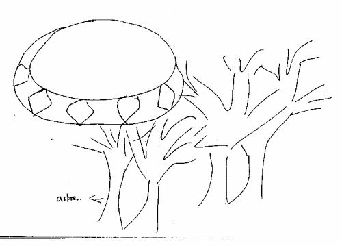 Summary: On February 2, 2002 around 7 p.m. 40, a family in the car observes a mass illuminated in the shape of saucer. This mass is of gray color with white luminous lights on its periphery. The phenomenon is stationary above the trees with a diameter estimated by the witnesses at about fifteen meters. No noise is perceived during the observation which was stopped because of the profile of the road. No explanation could be brought to this phenomenon.