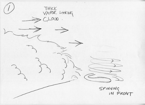 [Second email from witness – on July 15, 2005, with new, additional, hand-drawn sketches: I reported our experience across the world last year and part of this year, it is now being taken seriously, finally, and i will not give up the search for the truth about what happened that night to my wife and I. I’ve enclosed some drawings,the middle part being a gas of some sort the outer illuminous colours spinning around after it give off light on our car,this happened at 1am over a period of about 5 miles in a rural part of Cheshire England before ascending up into the clouds,it appeared in front of us with a cloud of opake vapour on the road.I hope these pictures are available for everyone to see and maybe someone else has seen this too. Paul]