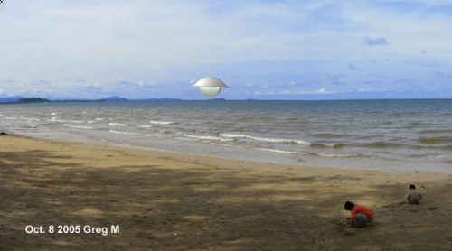 Appearance / Description of the Object(s): The vessel was white/metallic grey in colour. It had a gently curved top and a round large ball like bottom. The closest that I can describe it is that it looks fairly close to the one shown in Photo353.htm of this site. To me the most prominent feature of the vessel was the round ball like bottom.