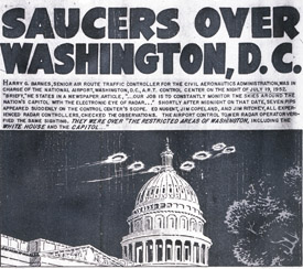 WASHINGTON — “Rumors about the saucer mystery fly almost as fast as the strange sights themselves,” pronounced the narrator of a 1952 Paramount newsreel, commenting on a rash of UFO sightings from New York to Washington. He added ominously: “With this evidence, the mystery thickens.”And so it seemed.